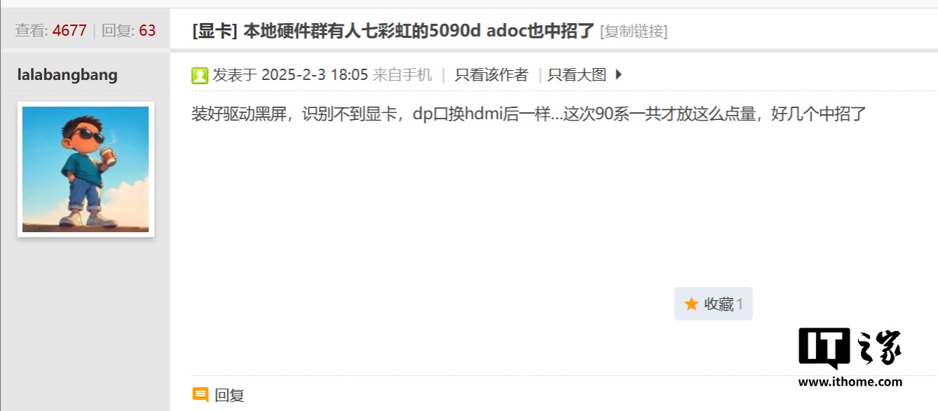 IT之家注意到,据受影响的用户反映,问题始于安装了最新的显卡驱动程序。有用户表示,在安装 GeForce RTX 5090D(七彩虹品牌)显卡的驱动程序后,电脑开机时屏幕直接变黑。此外,还有用户在百度贴吧上反馈,安装驱动程序后,操作系统无法识别其使用的万丽 GeForce RTX 5090D 显卡。