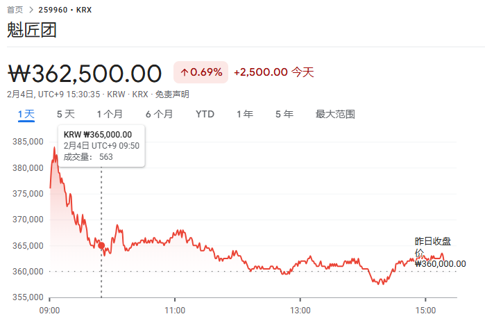 受此消息影响,Krafton 股价盘中一度上涨至 38.45 万韩元,涨幅达 6.81%,目前已经回落至不足 1%。