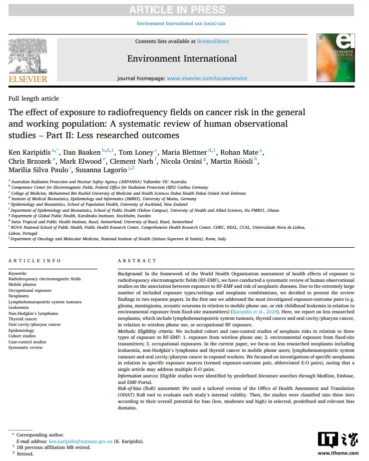 该研究报告已发表于《国际环境》杂志(DOI:10.1016 / j.envint.2025.109274),为世界卫生组织正在编撰的无线电波暴露对健康影响的环境卫生标准专论提供了重要参考。