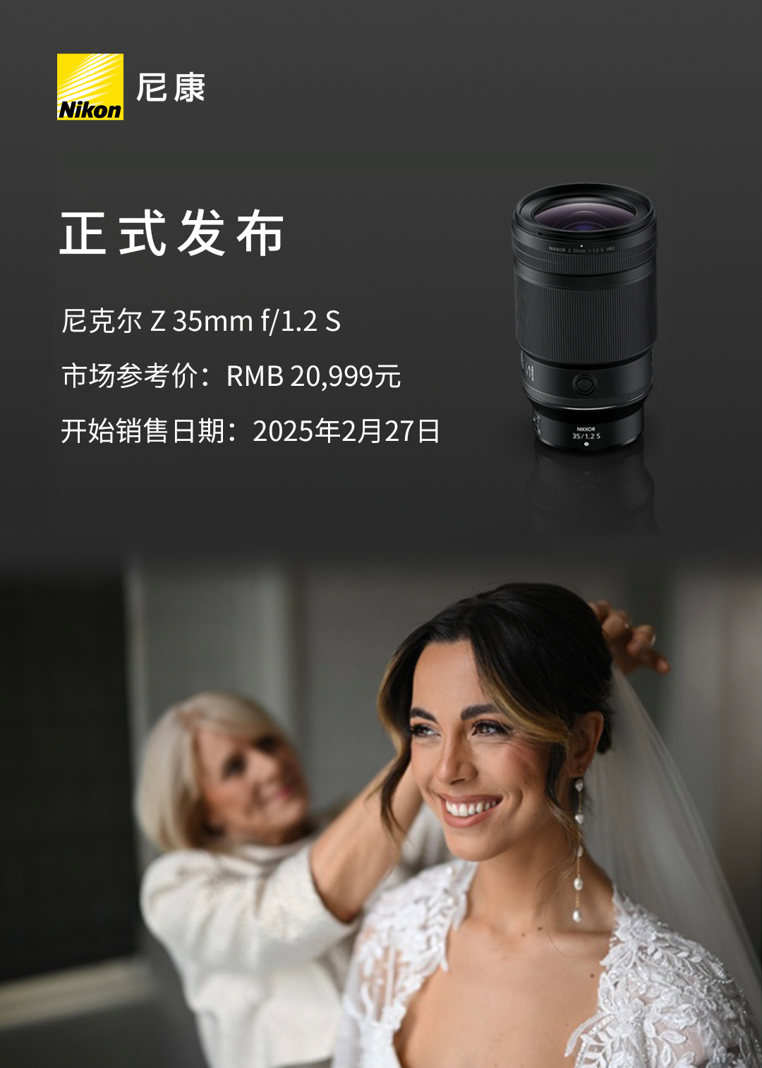 IT之家 2 月 5 日消息,尼康今日发布了一款尼克尔 Z 35mm f/1.2 S 镜头,市场参考价 20999 元,将于 2025 年 2 月 27 日开售。