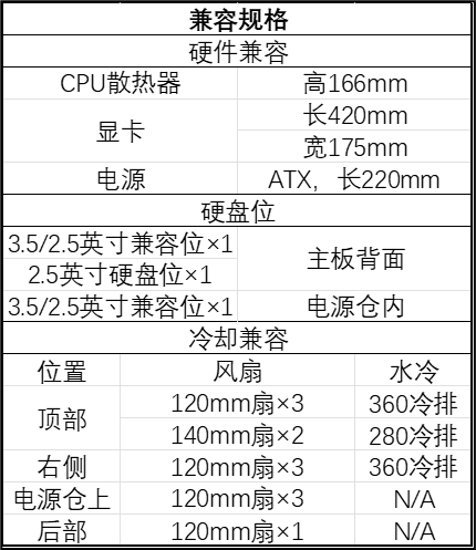 鑫谷甄木 1 整机尺寸为 445×235×492 mm,体积约 51.45L。其兼容 10.5 英寸(267 毫米)宽 E-ATX 及以下尺寸主板,兼容背插,提供 35mm 理线空间;这一机箱拥有 7 条 PCIe 扩展槽,支持显卡竖装。