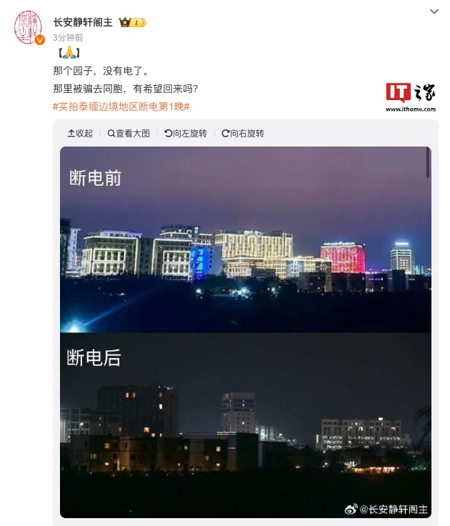 普坦当天在达府移民局主持会议,进一步部署打击边境毒品及犯罪活动的行动:包括国家广播电视和电信委员会、地方电力局等在内的政府机构正密切合作,全面推进相关措施。同时,泰军方与边境警察正加强边境管控,以确保整体进展符合既定计划。目前已有微博用户分享了泰缅边境断电后的前后对比。