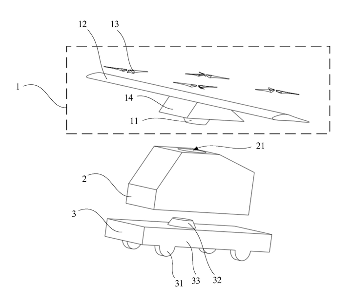IT之家从专利申请书获悉,大多数飞行汽车的设计还存在起降时间长、效率低、能耗高等问题。因此,如何提高飞行汽车的起降效率,成为亟待解决的问题。鉴于此,该申请提供一种分体式飞行汽车,能够提高飞行汽车的起降效率。
