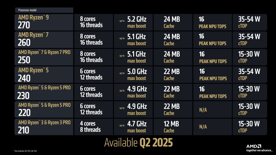 据IT之家此前报道,AMD 在 CES 2025 大展上,面向主流笔记本电脑,推出了代号为“Hawk Point Refresh”的 Zen 4 锐龙 200 / Pro 系列 APU,承诺提供更亲民的价格、更卓越的续航表现,以及满足日常使用的 AI 场景应用。