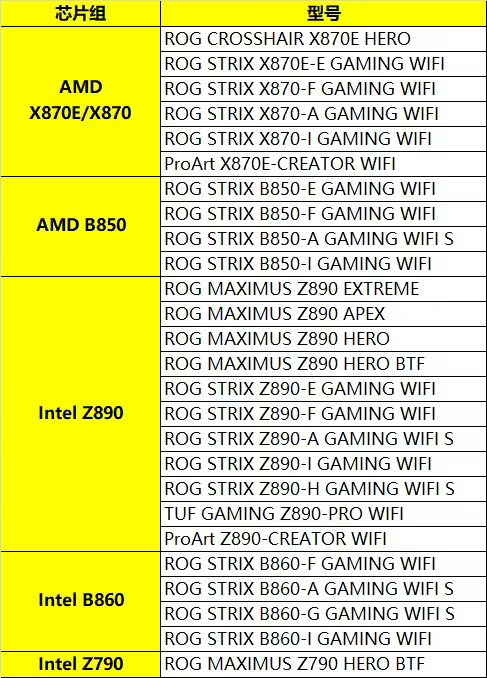 IT之家附使用新款显卡快拆设计(PCIe Q-Release Slim)的主板型号如下: