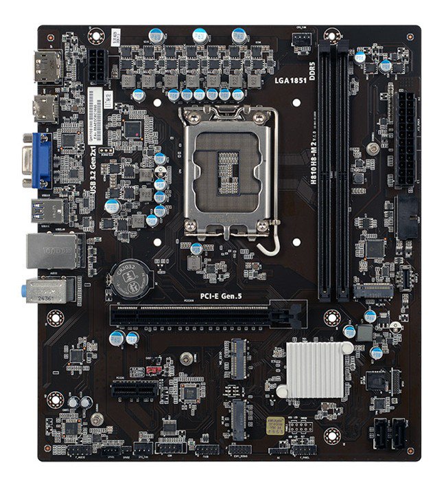 精英 H810H8-M2 主板采用 7+1 相供电设计,搭载单 EPS 8Pin CPU 辅助供电接口,支持至高 6400MT/s 的 DDR5 UDIMM 内存条。其详细规格如下: