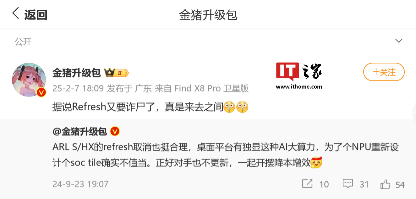 此前有消息称英特尔计划取消 Arrow Lake Refresh,但最新消息称英特尔正重新考虑该决定,该系列可能重新回到桌面和移动市场,此外还有消息称有望 Arrow Lake Refresh 在游戏优化方面有更好的表现,解决现有酷睿 Ultra 200S 系列存在的问题。