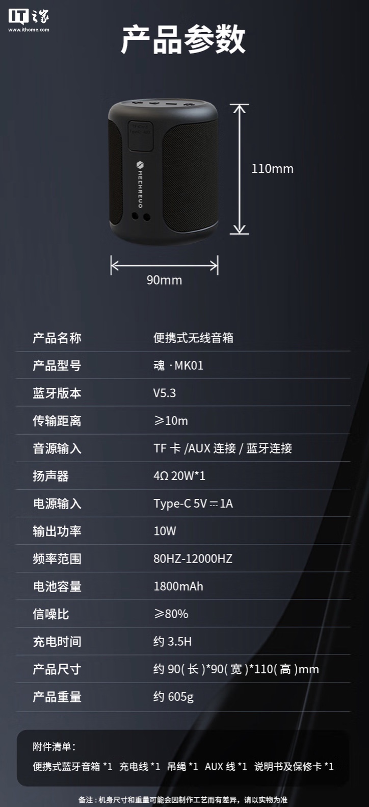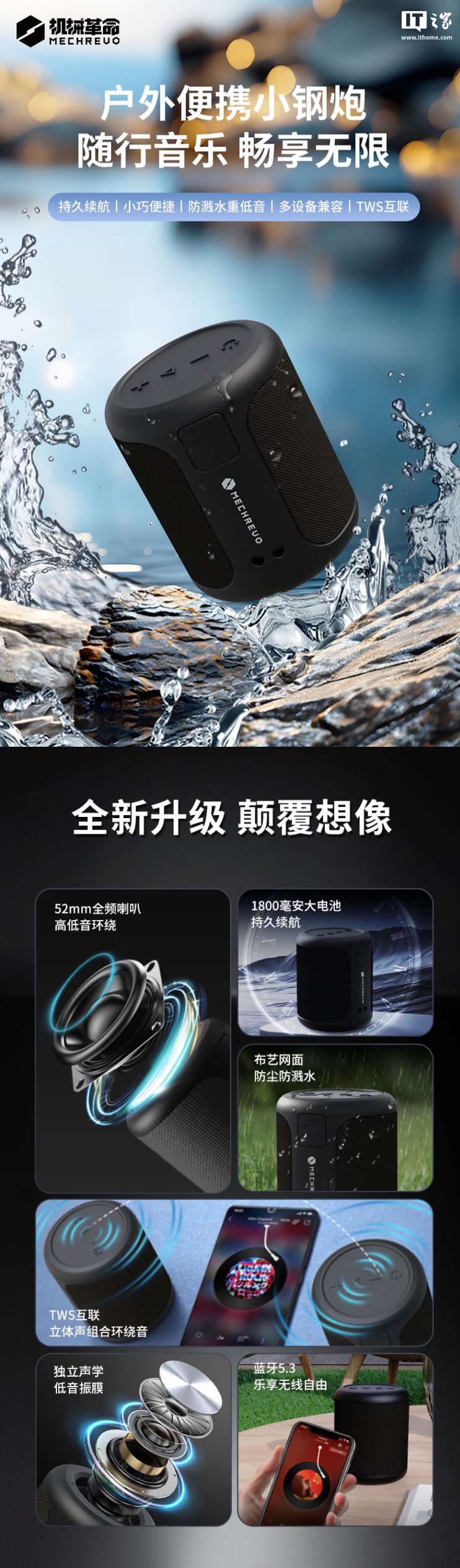 IT之家 2 月 10 日消息,机械革命现已经在京东上架一款型号为“魂・MK01”的蓝牙音箱,这款音箱主打“蓝牙 5.3、TWS 无线互联”,定价为 149 元。