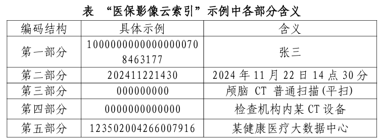 “医保影像云索引”共分 5 个部分,通过大写英文字母和阿拉伯数字按特定顺序排列表示,具体顺序为: