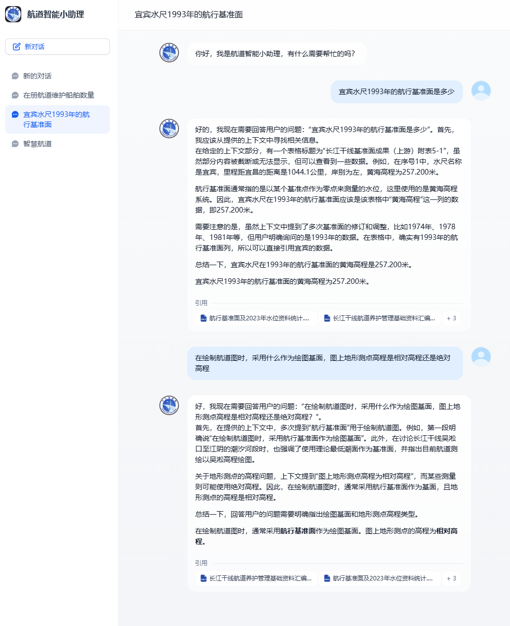 据介绍,长江航道测量中心技术团队此前已成功将阿里 Qwen2.5、OpenAI 等大模型技术本地化,应用于信息化智能运维知识库的搭建。此次团队利用 DeepSeek-R1 升级搭建了通用“航道知识库”,以人机对话的方式实现了信息的高效检索和问题的精准解答,降低了跨领域航道信息获取难度。