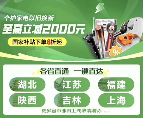 政府生活小家电补贴会场上线,以旧换新至高立减 2000 元,国家补贴下单 8 折起,点此前往个护家电补贴会场。