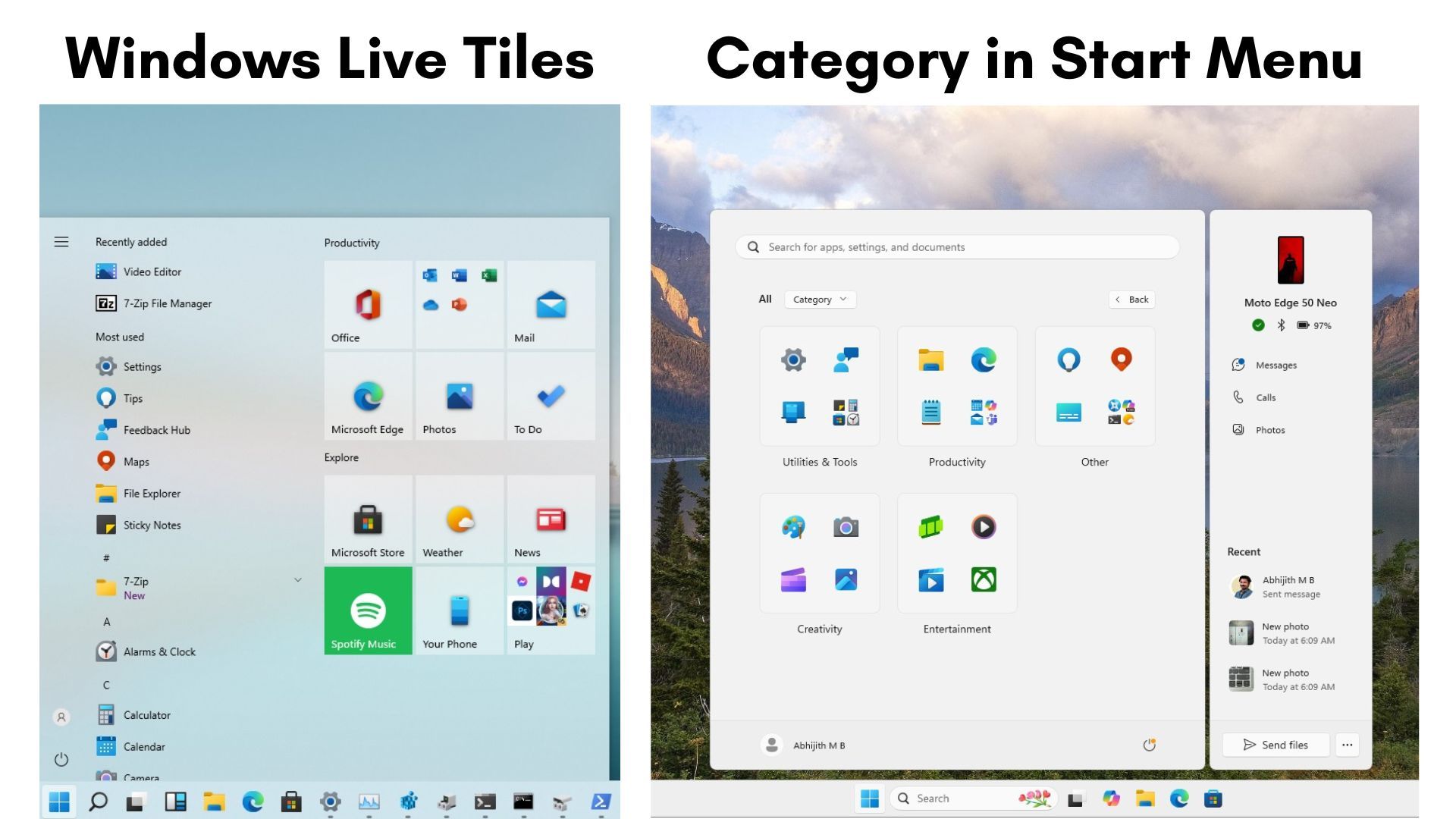 微软增强手机连接功能(Phone Link),Android 和 iOS 用户都可以在开始菜单右侧面板查看手机电量、消息、通话和照片等信息。