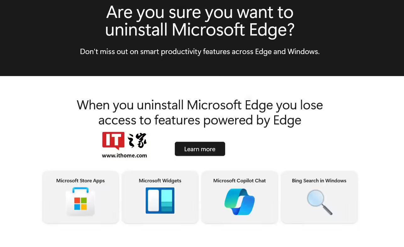 IT之家注意到,如今该链接已指向一个新的网页,其内容不再伪装成“卸载 Edge 指南”,而是着重推广 Edge 浏览器本身及其功能特性。例如,网页介绍了 Edge 浏览器的集成 Copilot 功能、垂直标签页、改进的能效表现,以及其他一些真正实用的功能。同时,微软还移除了之前用于比较 Edge 和 Chrome 的表格。