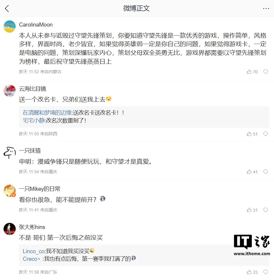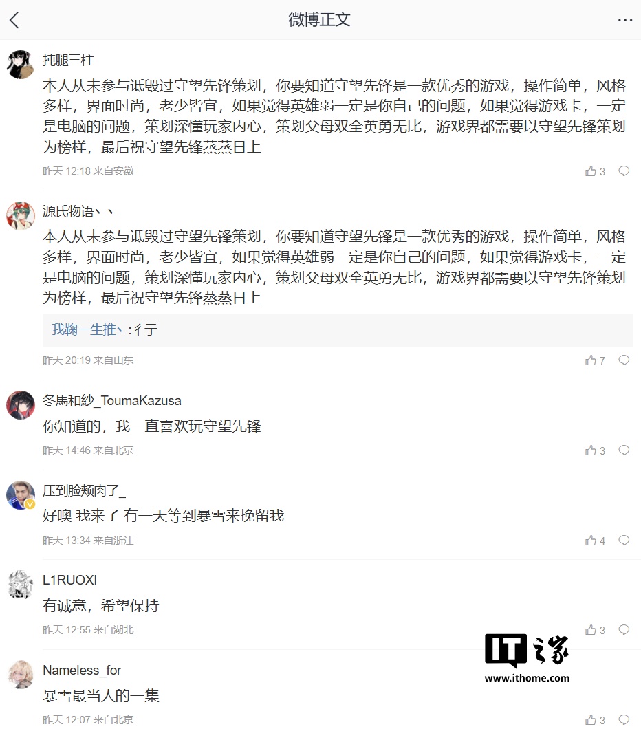 在《守望先锋》官方微博下方,不少网友都对这一补偿方案表示满意。