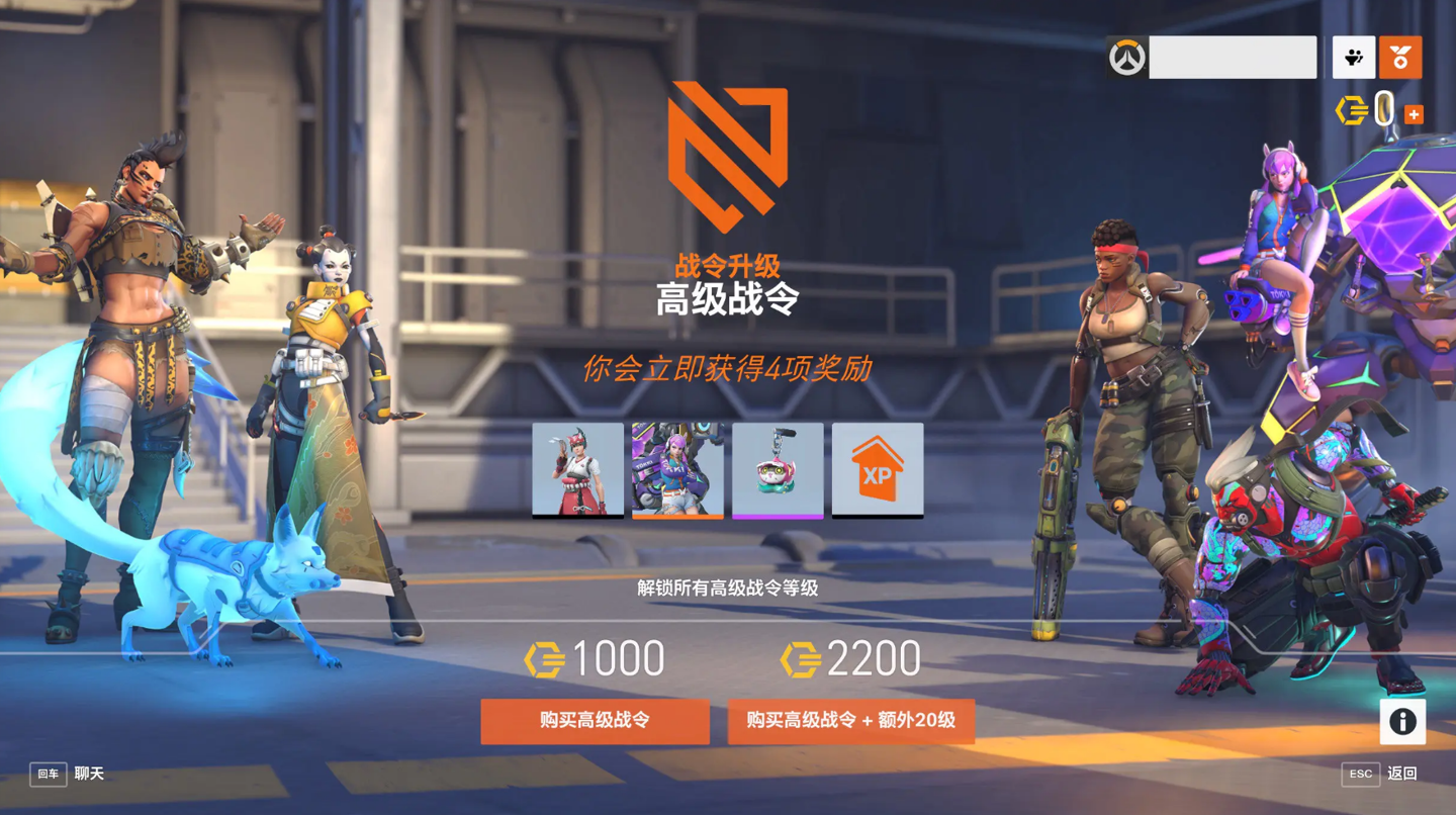 第二赛季高级战令 或 第二赛季高级战令 + 20 级战令等级礼包 | 2200 守望金币 | |