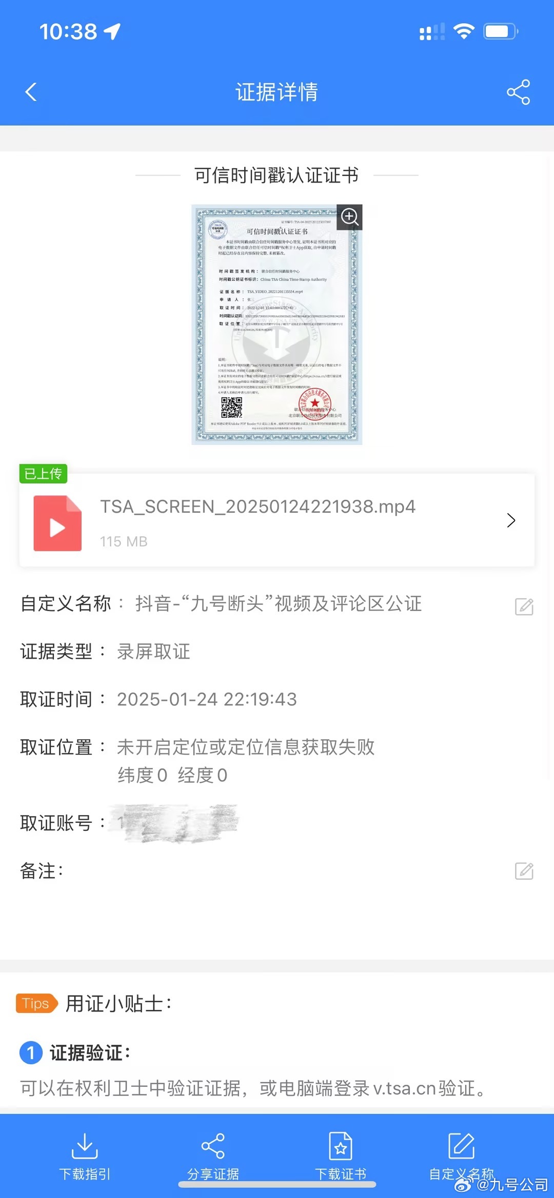 此外,九号公司还晒出图片,已对抖音“九号断头”视频及评论区进行录屏取证。