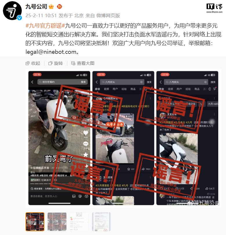 IT之家 2 月 11 日消息,电动车企业九号公司今日发文,针对网传“九号断头”信息进行了回应。