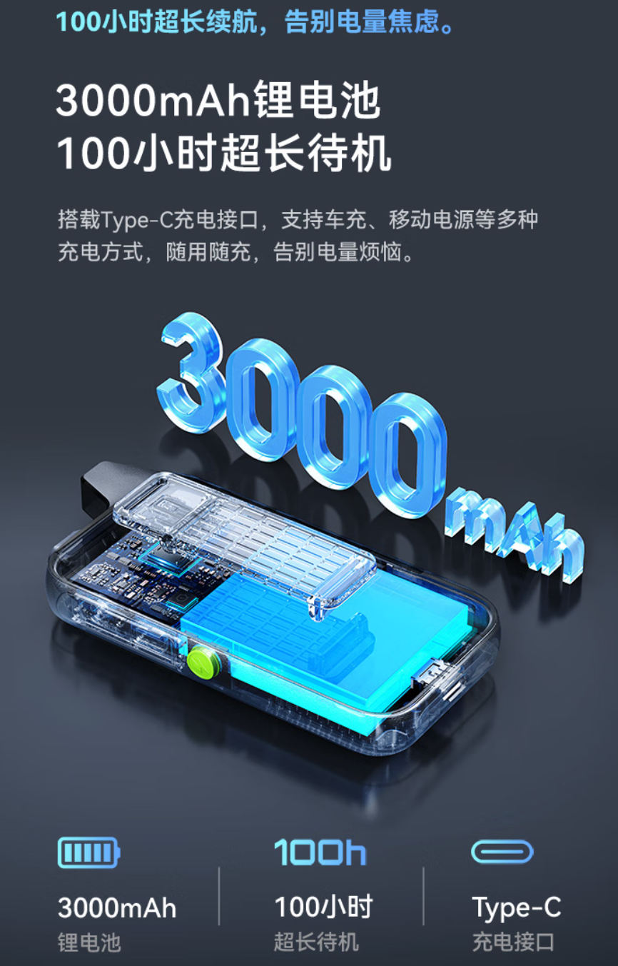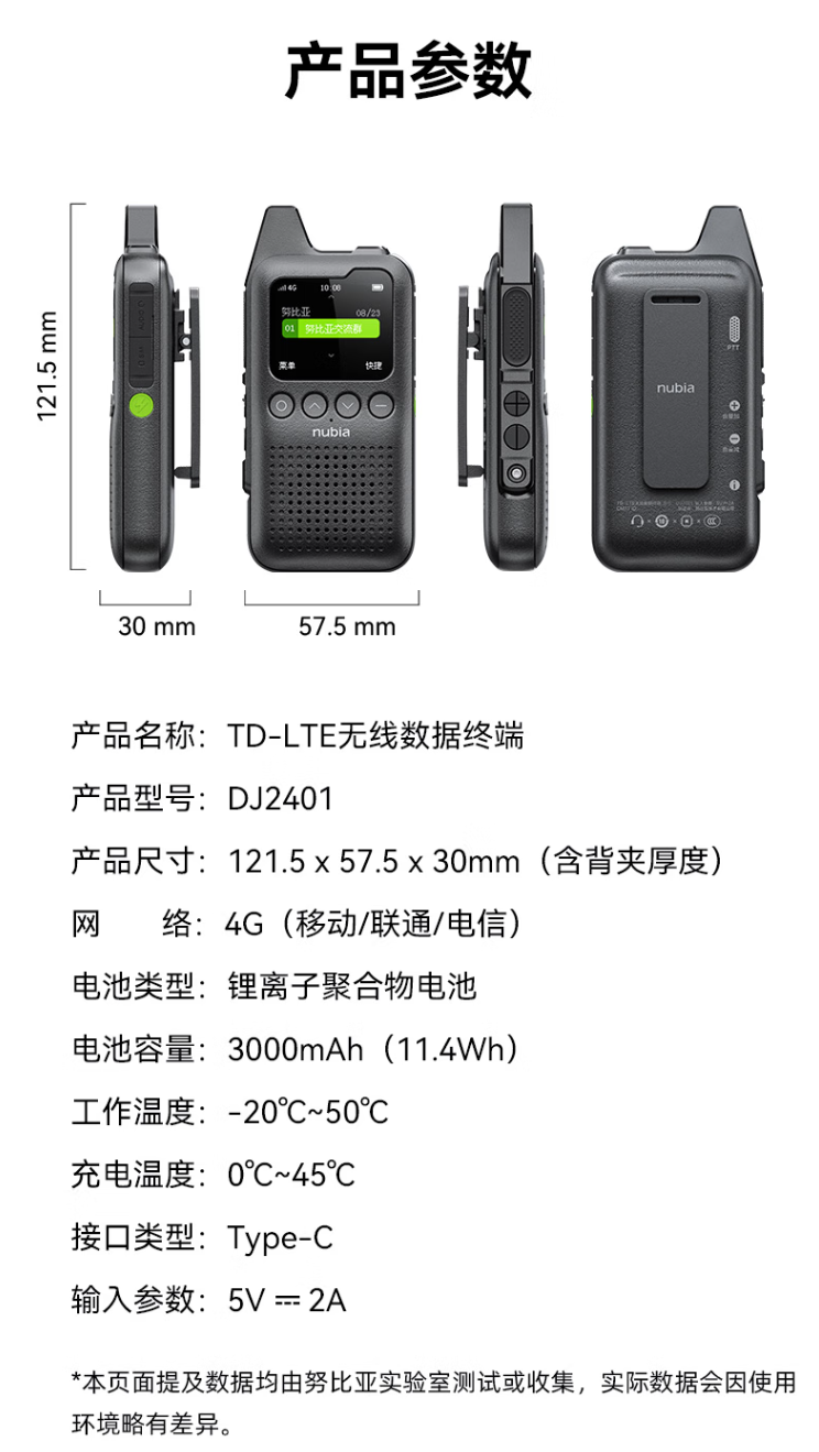 据介绍,努比亚公网对讲机 M1 内置 3000mAh 电池,标称 100 小时续航;支持 4G 全国对讲,可使用中国移动、中国联通、中国电信的 4G 网络(IT之家注:赠送 1 年免费流量卡,30 元 / 年平台服务费,首年免平台费使用)。