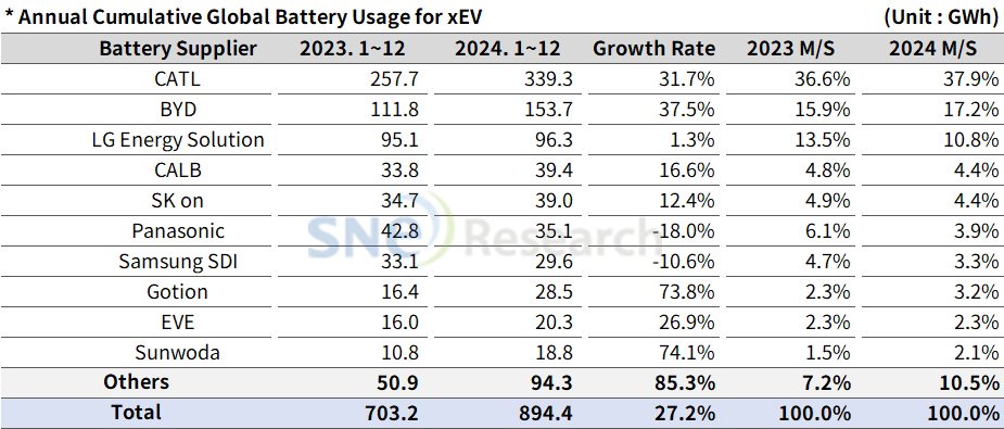 比亚迪以 37.5%(153.7GWh)的同比增长率位居第二。比亚迪不仅自己生产电池,还生产电动汽车。比亚迪通过进军亚洲和欧洲市场,迅速扩大了其在中国国内市场以外的市场份额。