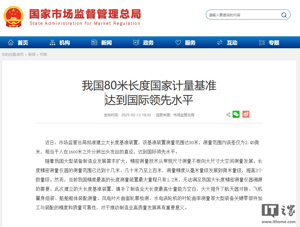 在此之前,我国精度最高的长度测量装置最大量程仅为 1.2 米,难以满足航天器对接、飞机翼身组装、船舶船体装配、风电叶片曲面检测等大型装备制造需求。新基准装置的建成,不仅将测量范围扩展至 80 米,其误差控制能力更是提升了 3 个数量级(IT之家注:从毫米级跃升至微米级),解决了大尺寸零部件加工与装配中的“测不准”难题。