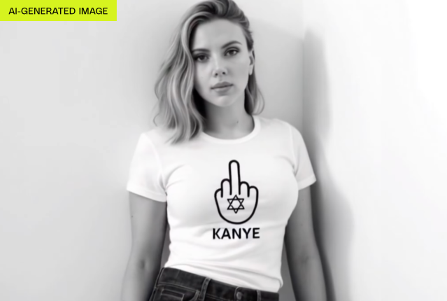 上述引发争议的 AI deepfake 视频显示,斯嘉丽・约翰逊与其他犹太裔名人,包括杰瑞・宋飞(Jerry Seinfeld)、米拉・库妮丝(Mila Kunis)、杰克・布莱克(Jack Black)、德雷克(Drake)、杰克・吉伦哈尔(Jake Gyllenhaal)、亚当・桑德勒(Adam Sandler)等,穿着一件印有“Kanye”字样以及带有大卫之星的中指图案的 T 恤。此前,Ye(原名坎耶・韦斯特)在社交媒体平台上发布了反犹太主义言论,并在其网站上销售带有纳粹标志的 T 恤,这些产品目前已下架。