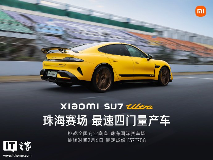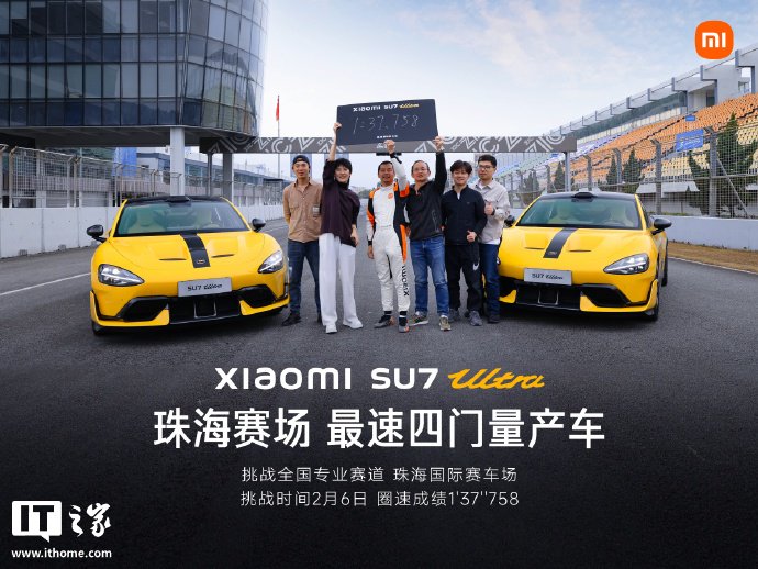 IT之家 2 月 13 日消息,小米 SU7 Ultra 挑战全国专业赛道第二站成绩公布,此次是珠海国际赛车场,小米 SU7 Ultra 再次斩获最速四门量产车佳绩,圈速成绩为 1'37''758。