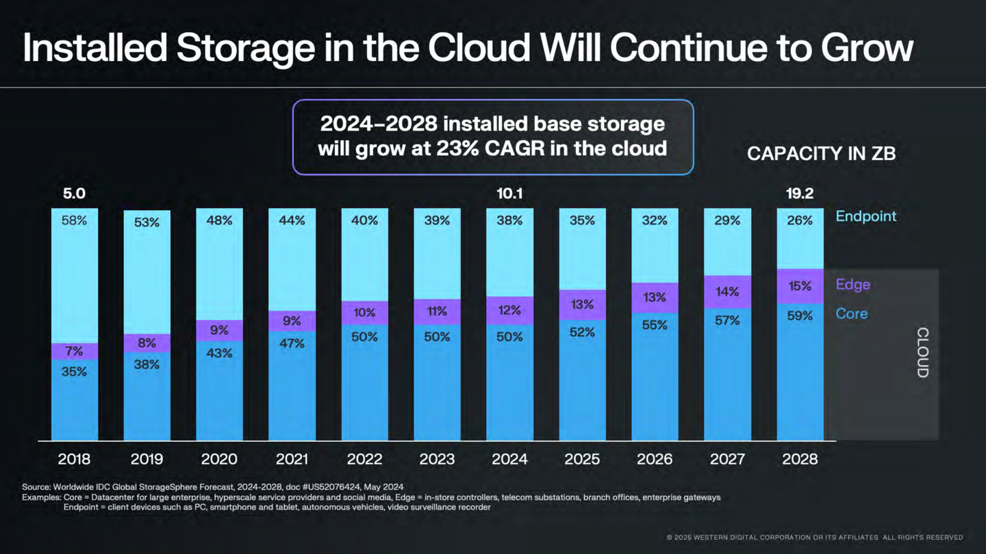 西部数据候任首席执行 Irving Tan 表示,该企业预计 2024~2028 年机械硬盘的出货容量将实现 23% 的复合年增长率。