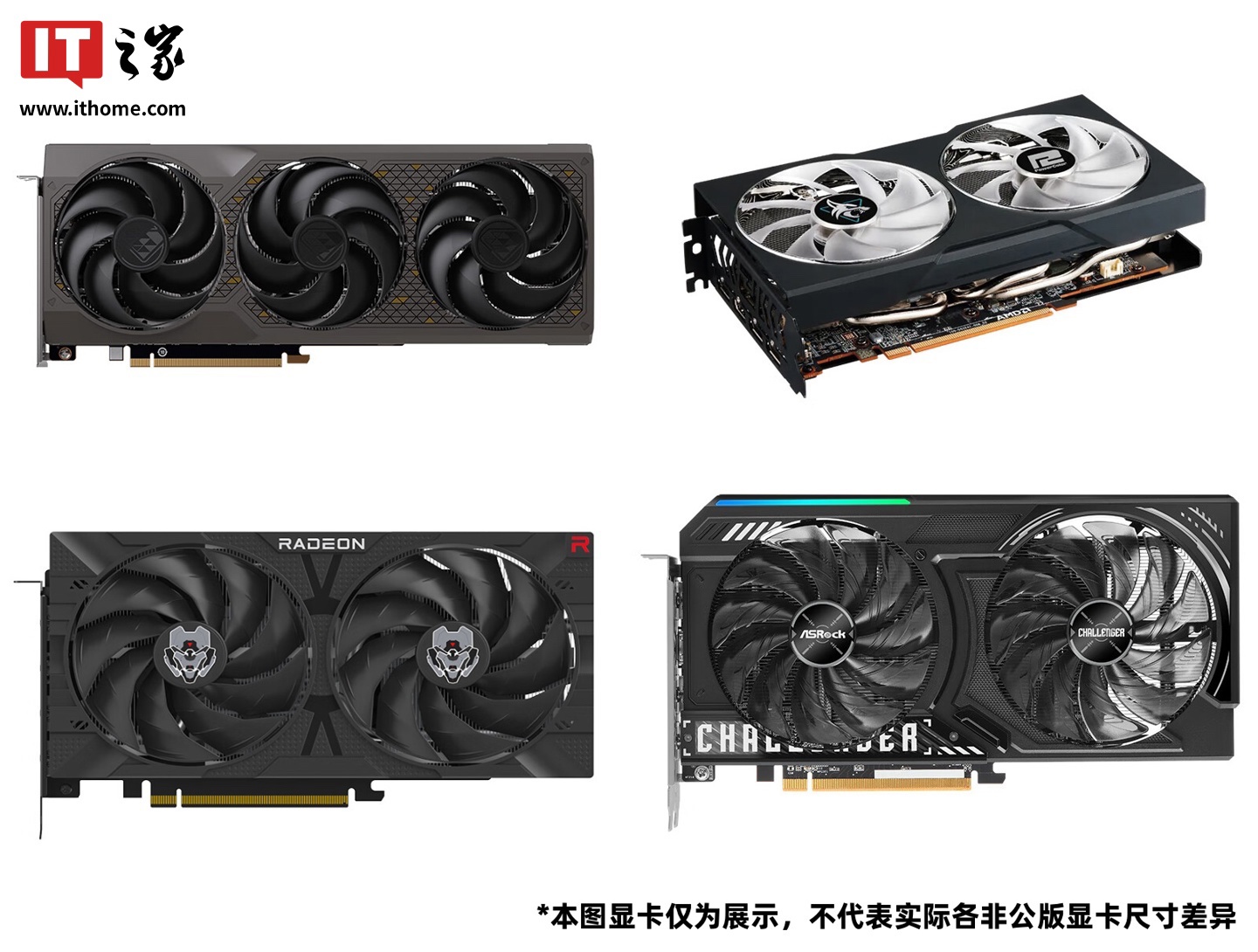 作为比较,华硕、蓝宝石、撼讯、瀚铠、华擎、盈通均已推出该卡的非公版型号,多数采用双风扇散热,少数采用三风扇散热,供电规格为单 8PIN,这些非公版产品起售价为 2049 元。