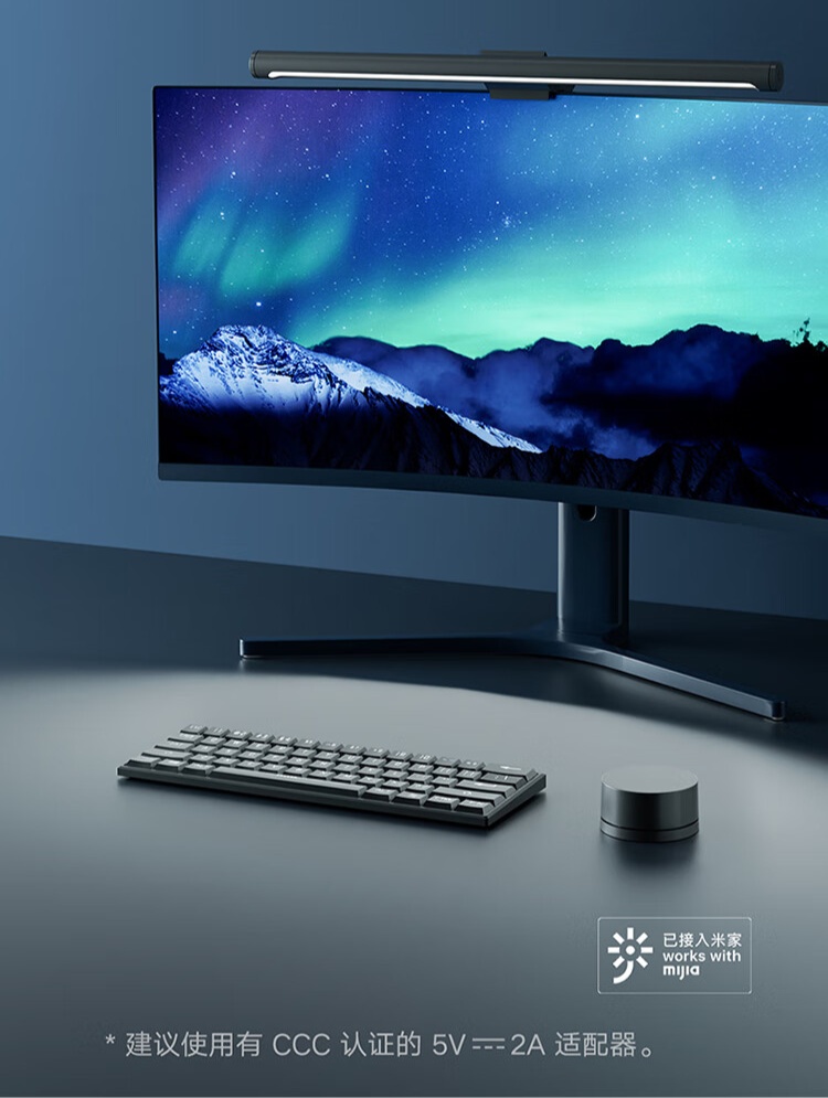 据介绍,米家智能显示器挂灯 1S 具备非对称专业前向投光,可以缓解眼疲劳;0-32mm 厚度显示器适配,挂式安装,无线遥控器,带给用户更整洁桌面。还能接入米家 App,智能联动,小爱语控,可以解锁更多玩法。