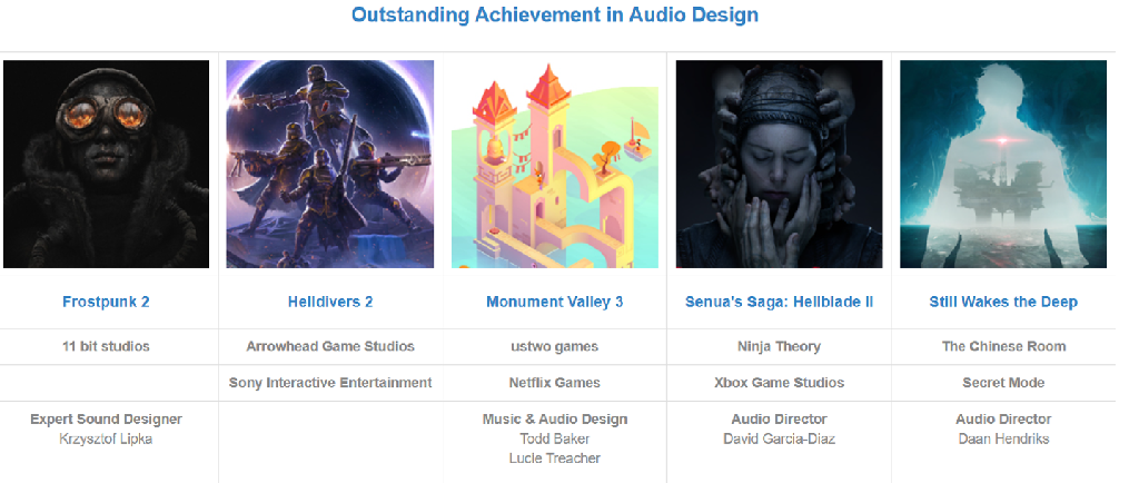 音频设计杰出成就奖: