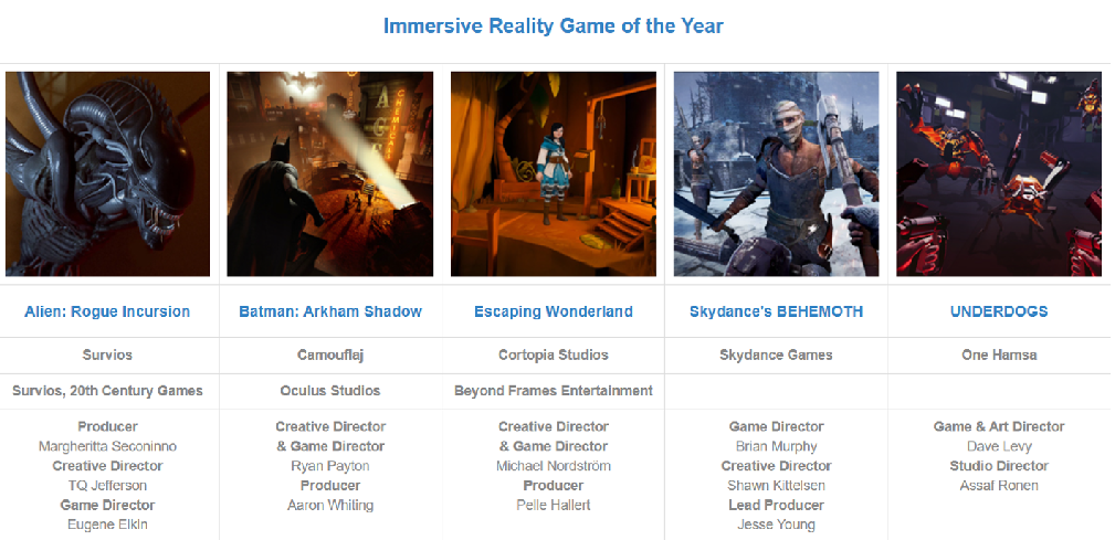 年度虚拟现实游戏: