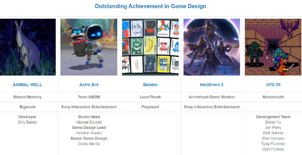 游戏设计杰出成就奖: