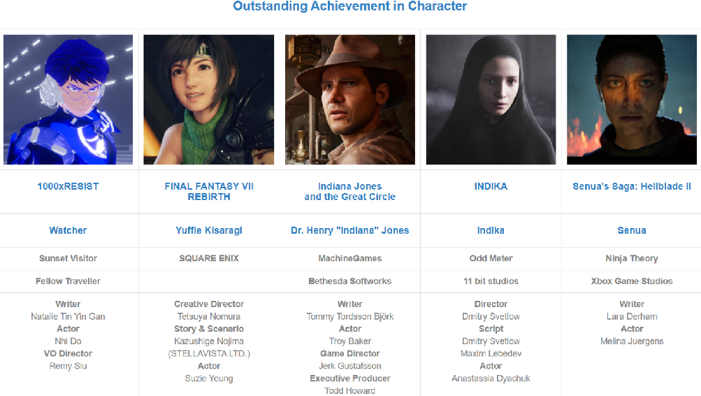 杰出角色设计成就奖: