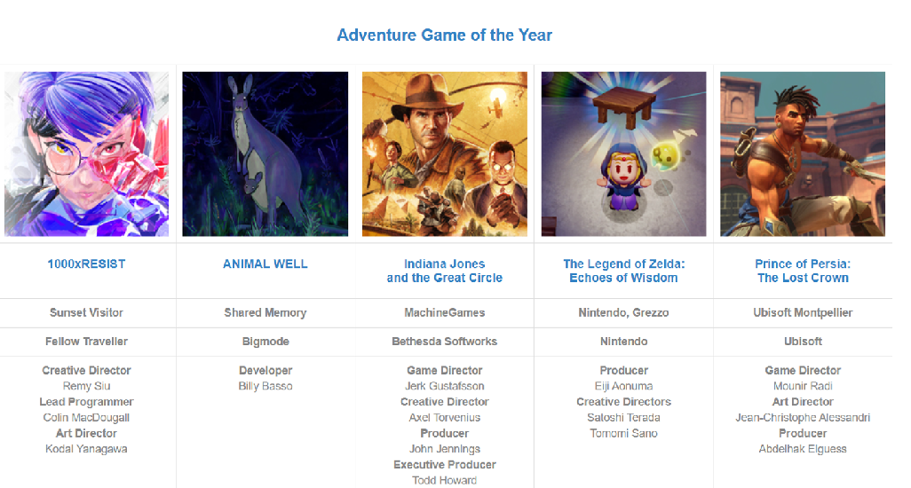 年度冒险游戏: