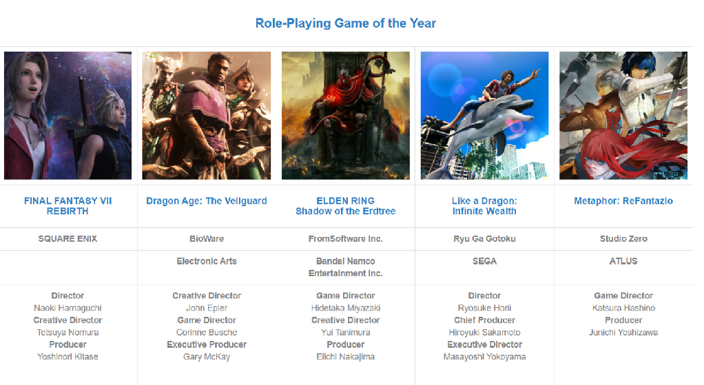 年度角色扮演游戏: