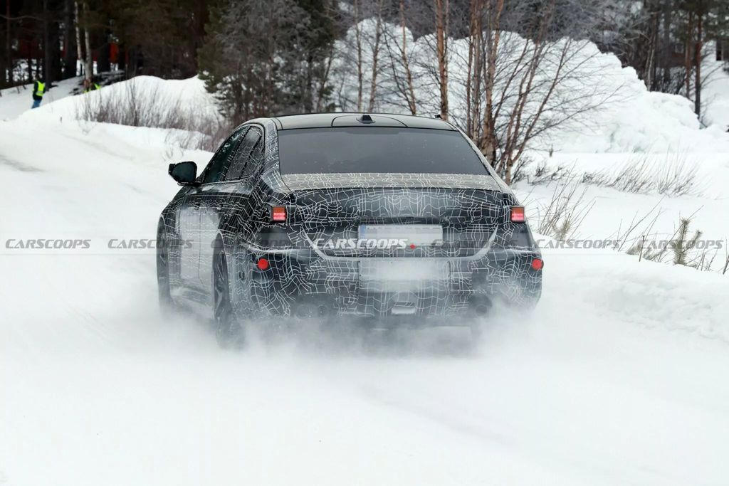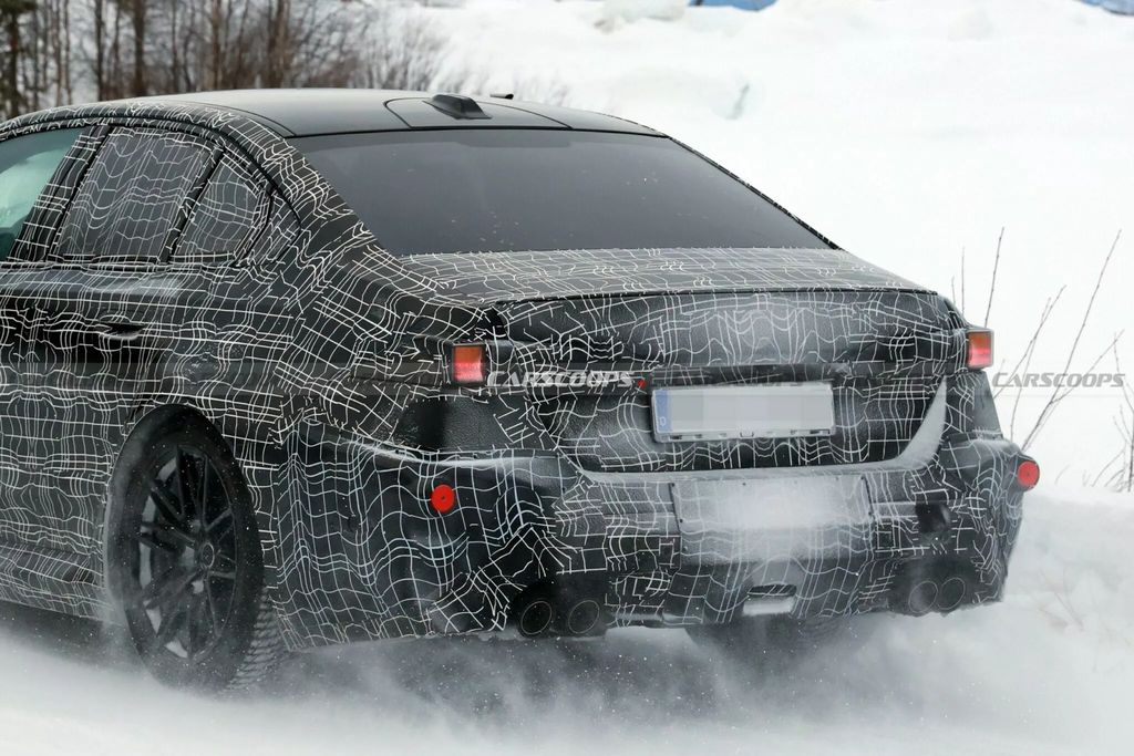 车尾部分,新款 M5 预计将配备全新的后保险杠和尾灯,此外扩散器似乎也略微收敛了一些,但由于伪装较厚,目前还难以确定。