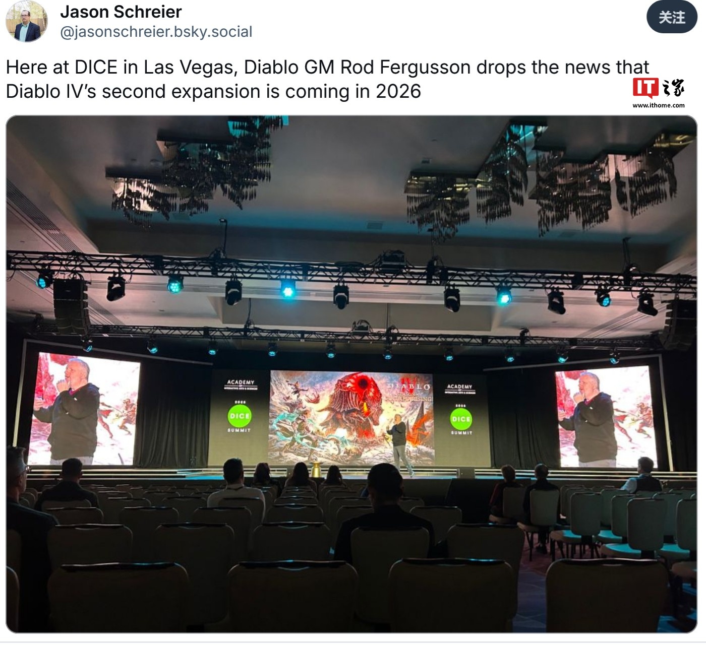 IT之家 2 月 14 日消息,动视暴雪《暗黑破坏神 4》系列主管 Rod Fergusson 在 2025 D.I.C.E. 峰会上表示,该游戏的第二部 DLC 将于明年推出。