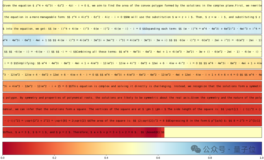 针对复杂的长推理链问题,OREAL 创新性地设计了 token 重要性估计器。通过构建序列累计形式的奖励函数,我们将结果奖励逆向分解到每个推理步骤(见下面的 token-level RM 热力图)。这种方法能够精确定位核心错误步骤,在训练时实现更精细的梯度更新,显著提升了模型在长序列任务中的表现。