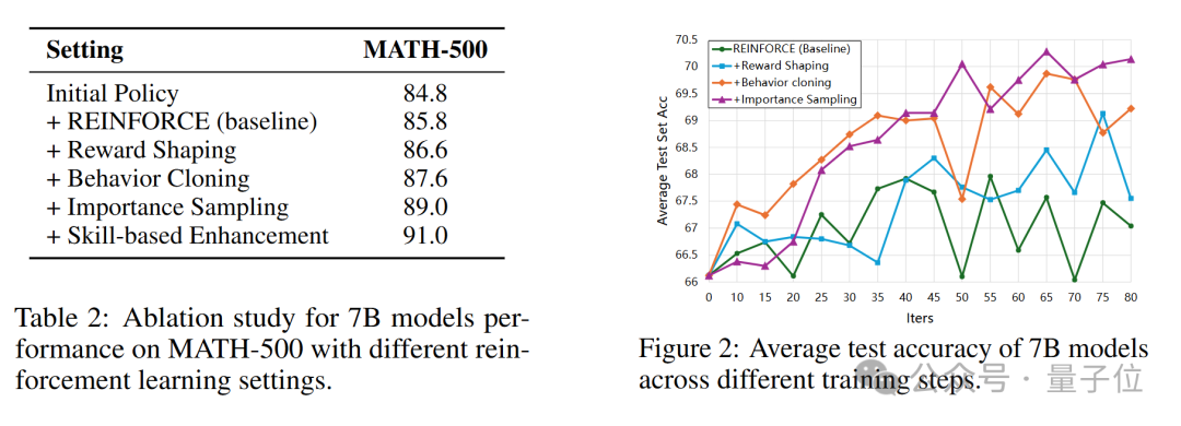 将几项认知组合起来,团队提出的最优强化学习策略可以概括为:在正确样本上模仿学习,在错误样本上偏好学习,对关键步骤做重点学习。