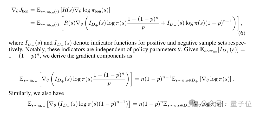 在数学推理任务的采样流程中,团队经过理论分析推导,提出核心见解:在二元反馈机制下,采样任意数量包含正确答案的 BoN(Best-of-N)设置,其正确轨迹的分布具有一致性特征。这一发现表明,通过直接行为克隆(behaviorcloning)采样得到的正确轨迹,已经构成了正样本训练中的最优设置。