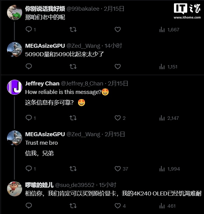 该爆料人对这一消息的可靠性非常自信,不过对于国内 RTX 5090D 来说,预计供应量会比较少。