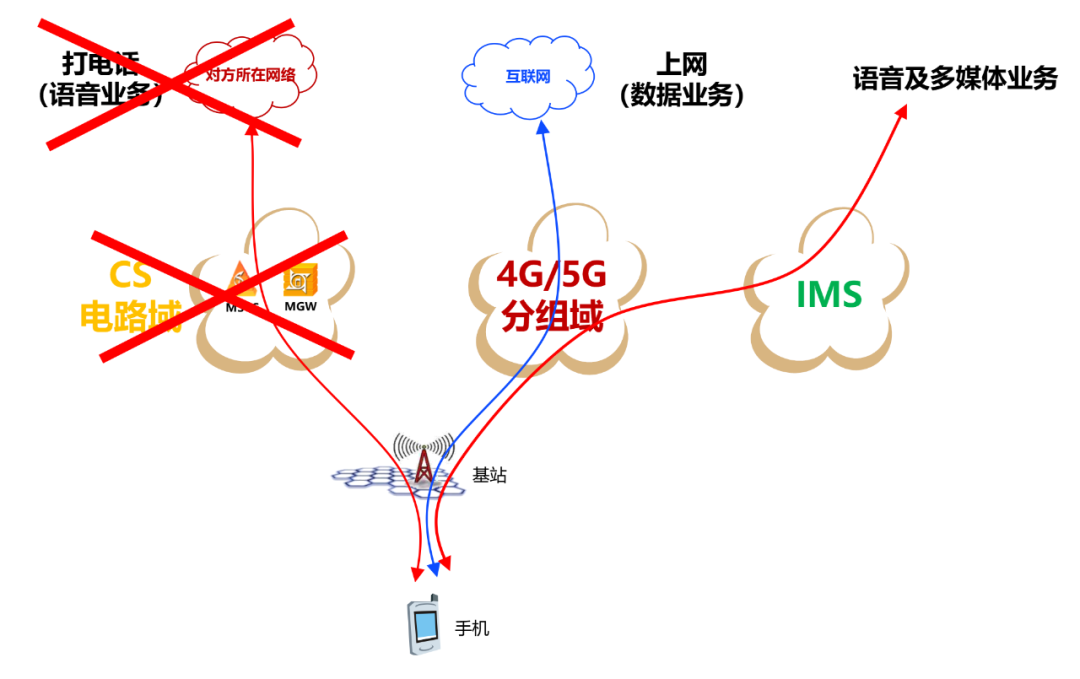 传统的 CS 电路域结构,非常死板,承载能力也十分有限,存在话务溢出严重、并发能力差、无法智能路由切换、接通率低、应急保障修复能力差等问题。