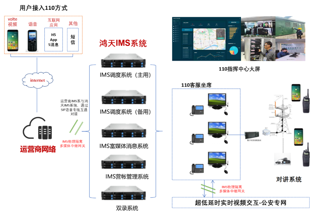 我们以鸿天科技的“基于 IMS 的 5G 可视化接警方案”为例,详细看看 IMS 私有化部署有哪些优点。