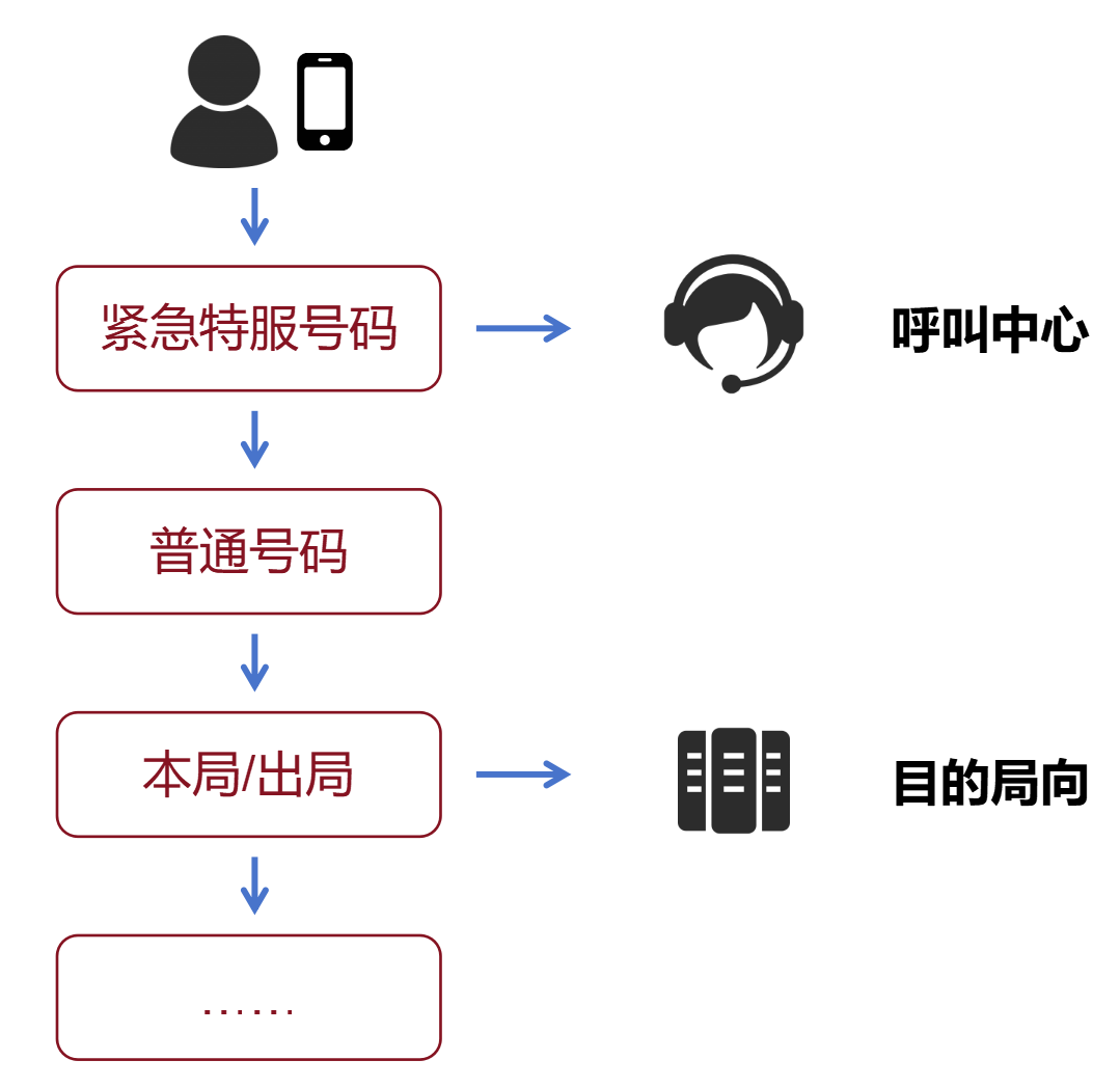 当用户拨打一个电话号码时,运营商的网络设备会进行号码分析。如果是普通号码,会进入比较复杂和繁琐的号码分析流程,例如移动 / 固话号码、本地 / 外地号码、其它运营商号码、国际出局号码,等等。如果是紧急特服号码,系统会立刻接续到当地的紧急呼叫中心(例如 110 报警中心)。