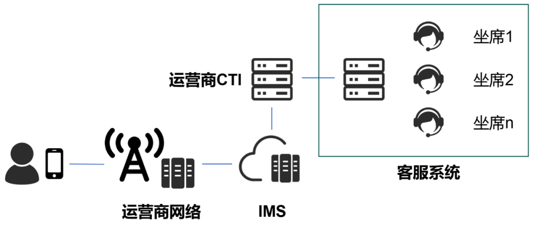 最近这几年,基于网络技术的发展,尤其是 5G 视频等能力的出现,出现了一些有代表性的部署方式,例如运营商 CTI 放号方式、融合通信产品方式以及 IMS 私有化部署方式。