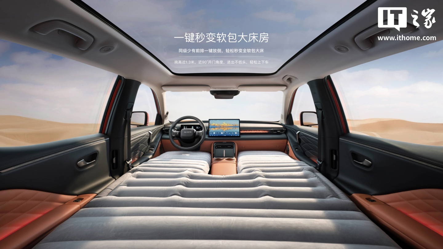 动力方面,第二代 AION V 霸王龙根据配置不同提供高 / 低功率两种驱动电机。其中,520 车型搭载的低功率电机最大功率为 150 千瓦,而 650 和 750 搭载车型的高功率电机最大功率为 165 千瓦,峰值扭矩均为 240 牛・米。此外,全系应用了 400 伏碳化硅平台和 3C 快充技术,配备弹匣磷酸铁锂电池,提供 520 公里、650 公里和 750 公里三种 CLTC 工况续航里程。650 智享版车型可在 15 分钟内完成 330 公里的快速充电。