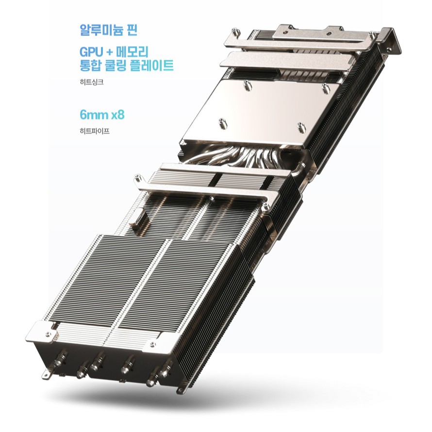 此外该显卡采用均热板 + 8 根 6mm 直径热管的散热组合,均热板可兼顾 GPU 核心与线程的解热需求。