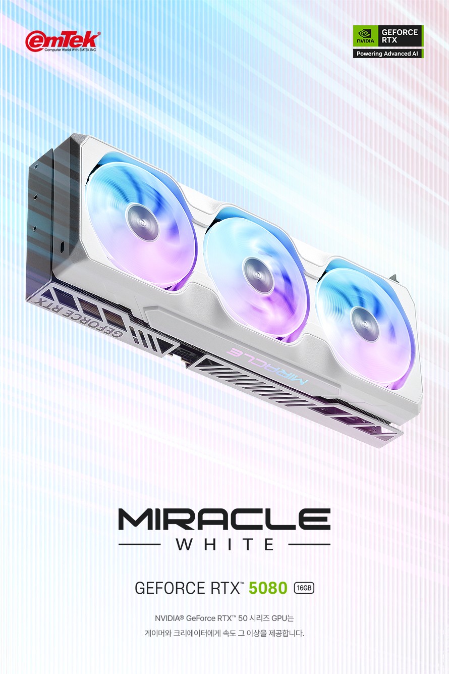 IT之家 2 月 17 日消息,韩国 emTek 不仅是一家电脑硬件经销商,也陆续在以自身品牌推出一系列产品。如今该企业的官网上线了第一款 emTek 牌的英伟达 GeForce RTX 50 系列显卡:RTX 5080 MIRACLE WHITE。