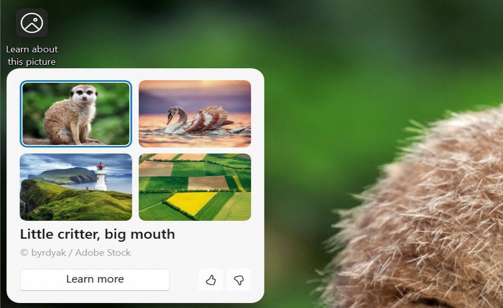 IT之家援引博文介绍,用户通过右键点击“了解此图片”(Learn about this picture)图标,选择 Copilot 按钮,即可自动上传壁纸图片至 Copilot 应用,获取更多相关信息。微软还优化了右键菜单,新增“设置”、“切换到下一张图片”、“询问更多照片”等选项,操作更便捷。