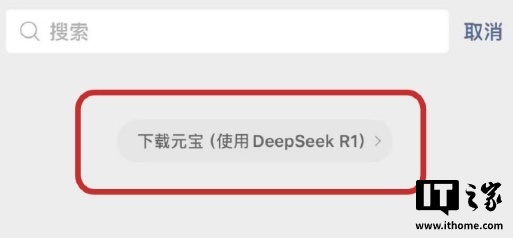 近期微信搜索开启了 AI 搜索灰度测试,引入了 DeepSeek 模型。腾讯方面称,用户对这一 AI 模型的使用热情远超预期。从今天起,尚未被纳入灰度测试范围的用户在点击微信对话框顶部的搜索栏进入微信搜索时,将有机会看到“下载元宝(体验 DeepSeek-R1)”的提示。